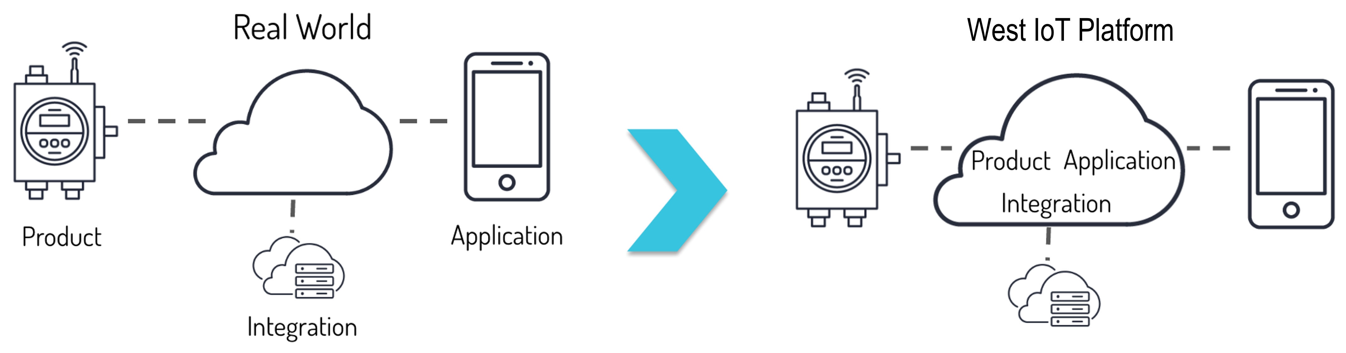 As is discussed in the Data Flow article, West Connectivity internally represents real-world IoT components as the concepts of Connected Products, Applications, and Integrations.