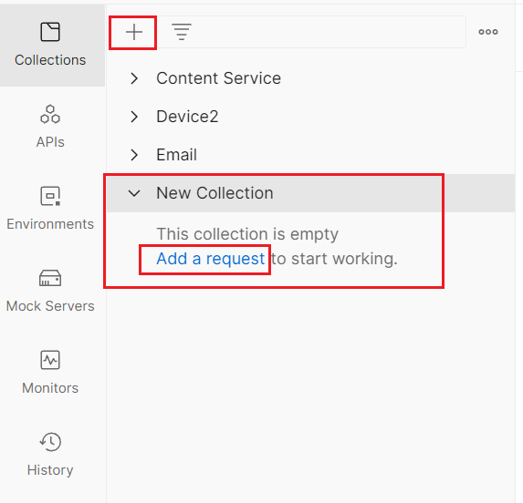 - Add a collection and add a request using Postman app