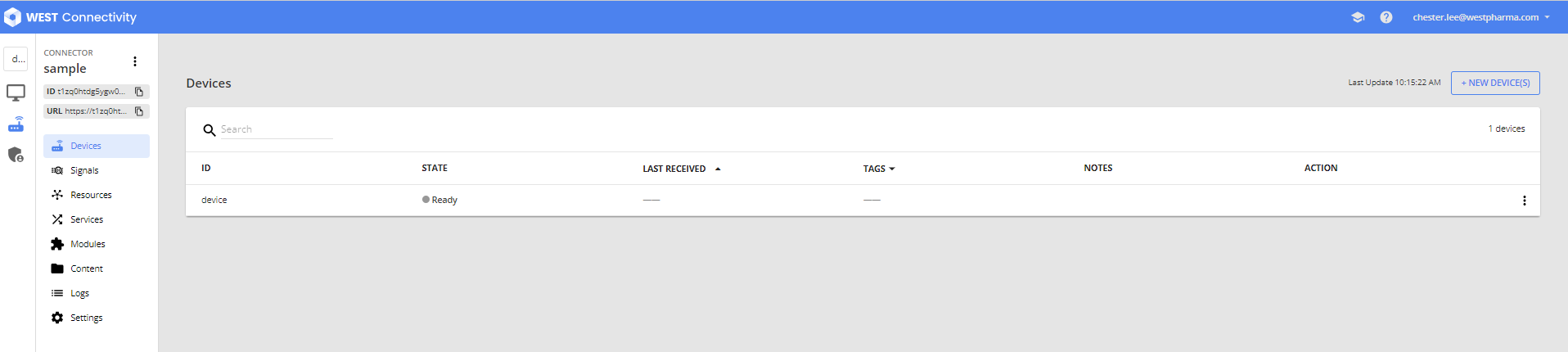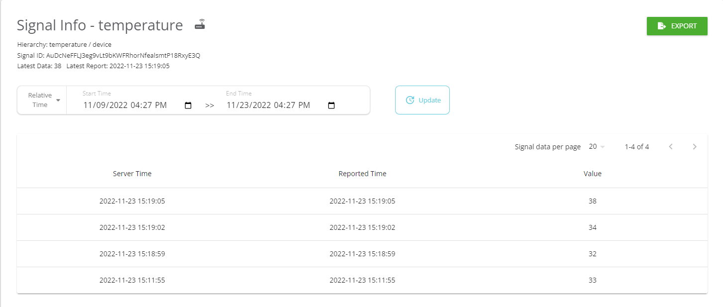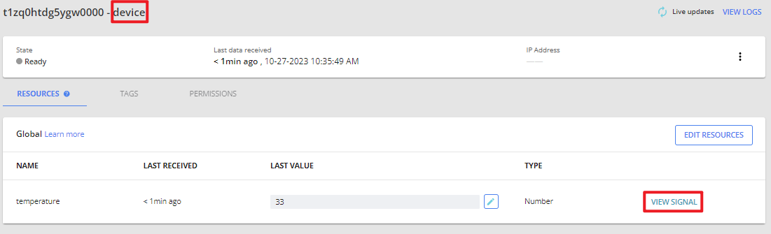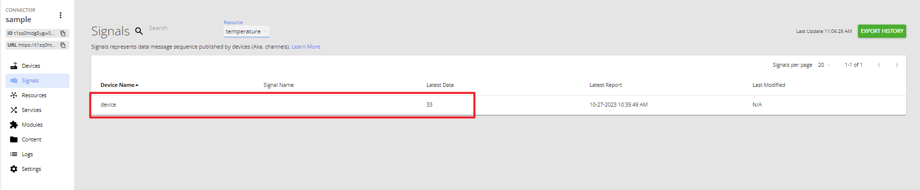 On Connector device detail page, click VIEW SIGNAL button of temperature resource